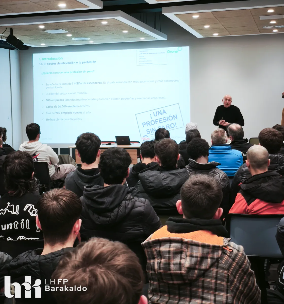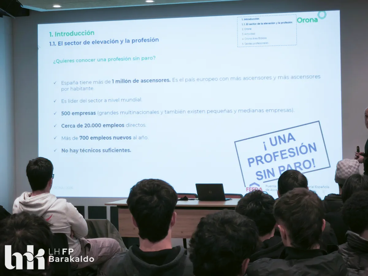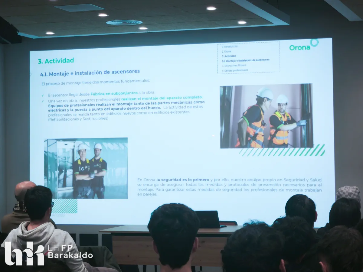 En FP Barakaldo LH mantenemos desde hace años una relación estrecha con Orona, que ha permitido que varias personas en formación realicen prácticas y se incorporen posteriormente a sus equipos. Nuestro objetivo es seguir fortaleciendo esta relación para que el alumnado pueda acceder a proyectos punteros y a un entorno laboral estable y dinámico.