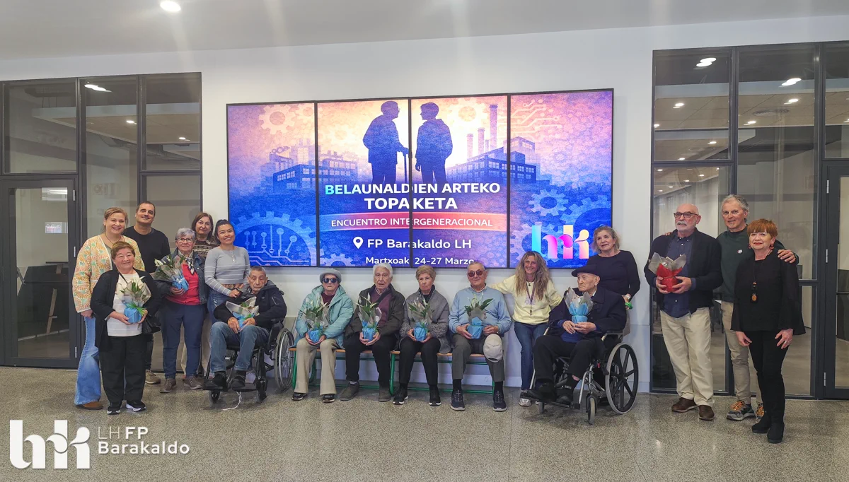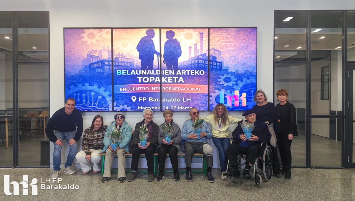 Valores 4.0 de FP Barakaldo LH y la Fundación Miranda, entidad referente en el cuidado integral de personas mayores, han impulsado un inspirador encuentro intergeneracional que conecta pasado, presente y futuro profesional. El 24 y el 27 de marzo, personas jubiladas con trayectorias muy diversas están compartiendo sus vivencias con el alumnado de distintas familias profesionales del centro.