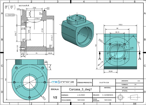 Los planos realizados por los diseñadores (José y Ekaitz), se han entregado al alumnado encargado de la mecanización. En este caso, esta labor de mecanizado ha correspondido al alumnado de 1º del ciclo de Mecanizado que estaba realizando sus prácticas de Dual General.