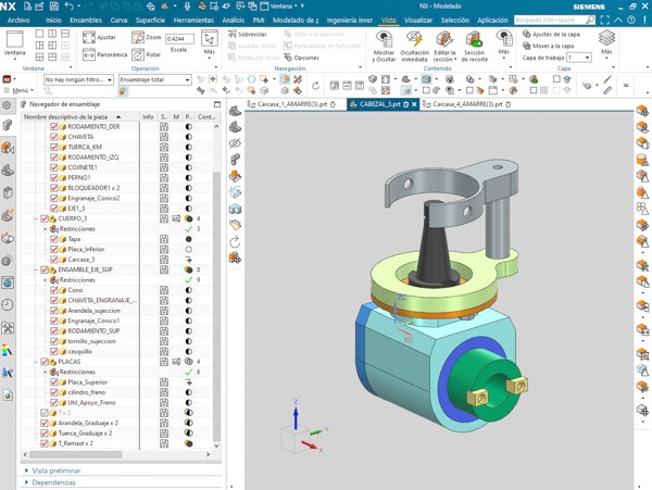 Todo el diseño se ha realizado con el software Siemens NX y posteriormente se han añadido las restricciones al conjunto: concentricidad…