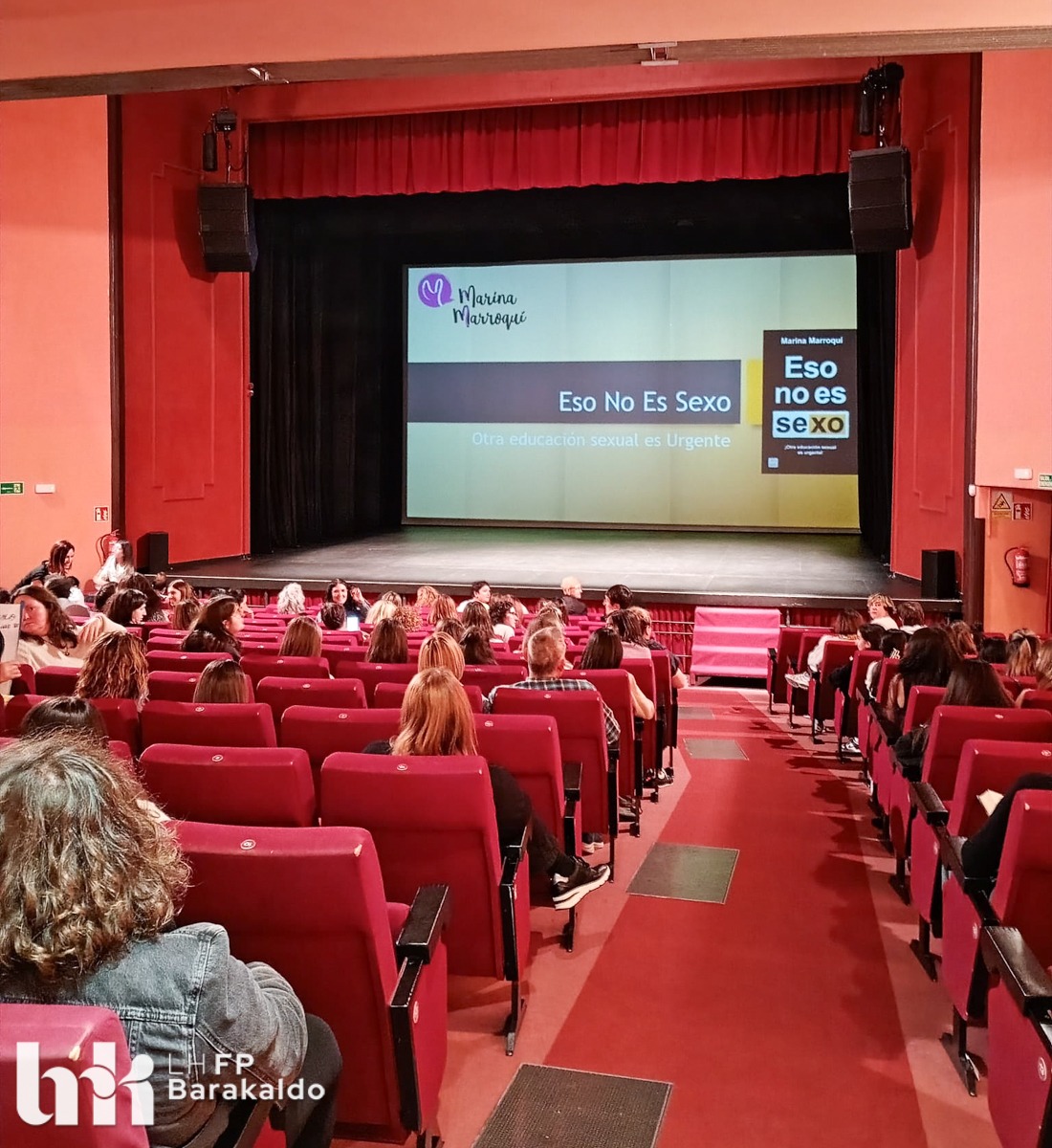 Estetika eta edergintza eta Irudi pertsonalaren eta korporatiboaren aholkularitza zikloetako ikasleak Barakaldo Antzokian izan dira, Marina Marroquí gizarte-hezitzaileak emandako “Cómo construir una educación afivo-sexual más del porno” hitzaldian.