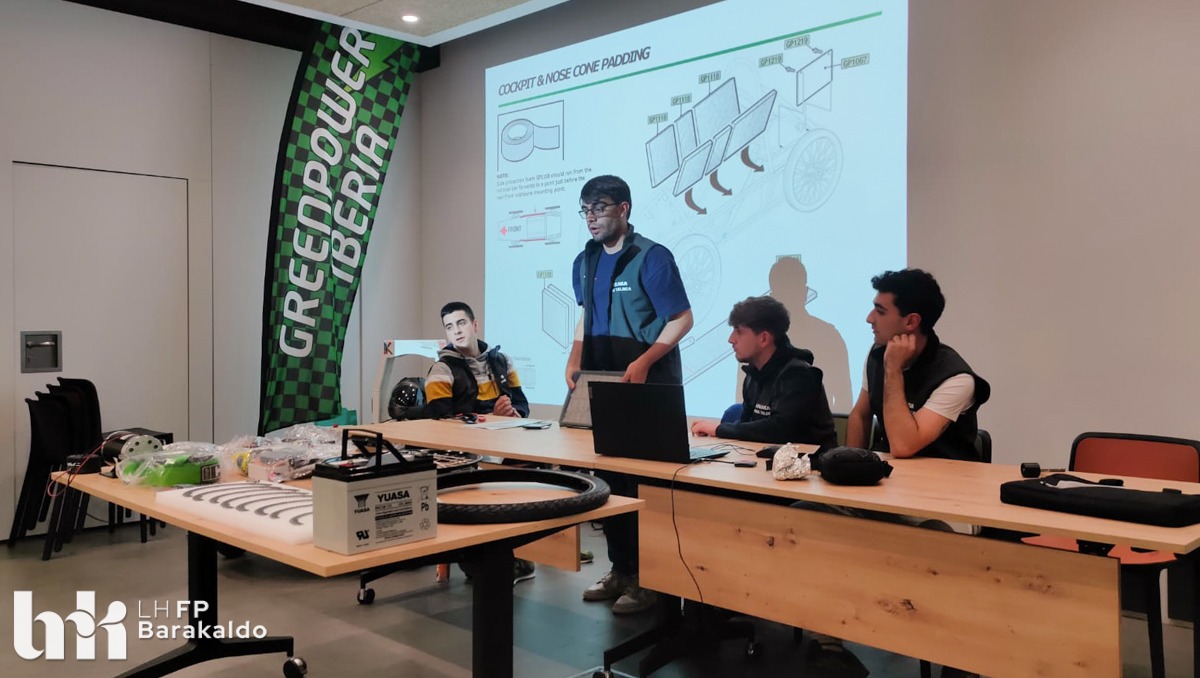 Greenpower Iberiako ordezkaria den Paul Rileyk eta Mantentze industriala zikloko bigarren mailako irakasle eta ikasleek egin zuten aurkezpenean ondorengoak landu ziren: